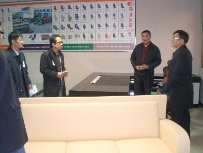 バスに乗り込みまずはメンバーの会社「洋溢家具工場」へと向かいました。台湾の歴代総統の椅子を製作しているという立派な会社であり、世界的にも活躍しているということで大変興味深く、有意義な時間を過ごしました。